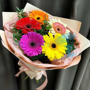 Доставка с поздравлением. Наш курьер торжественно вручит букет от вашего имени и зачтет ваше поздравление. Пожалуйста, уточните стоимость этой услуги у менеджера по телефону.