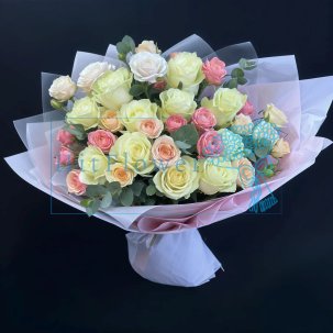 Доставка сюрпризом. Букет будет упакован в коробку, и получатель не сразу поймет, что внутри. Это создаст дополнительное ожидание и интерес.